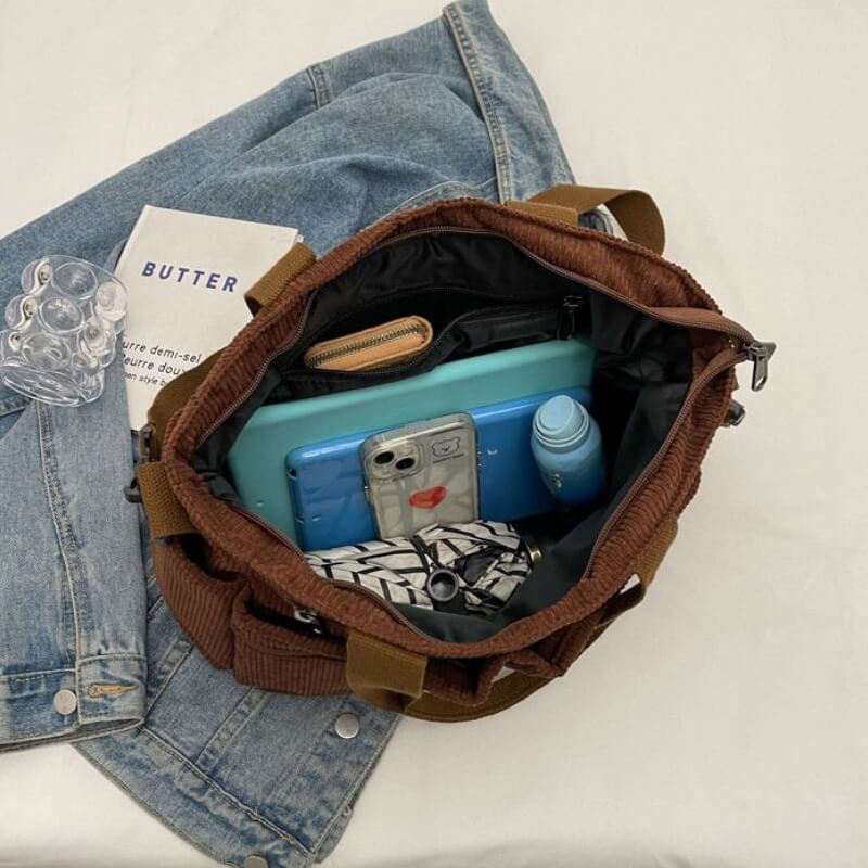 Urban Tote er den perfekte blanding af mode og funktion. Dens trendy fløjlsmateriale giver et moderne touch, mens det rumlige design gør den ideel til arbejde, skole og hverdagsbrug. Med praktiske lommer og alsidige bæremuligheder passer denne taske til enhver lejlighed.